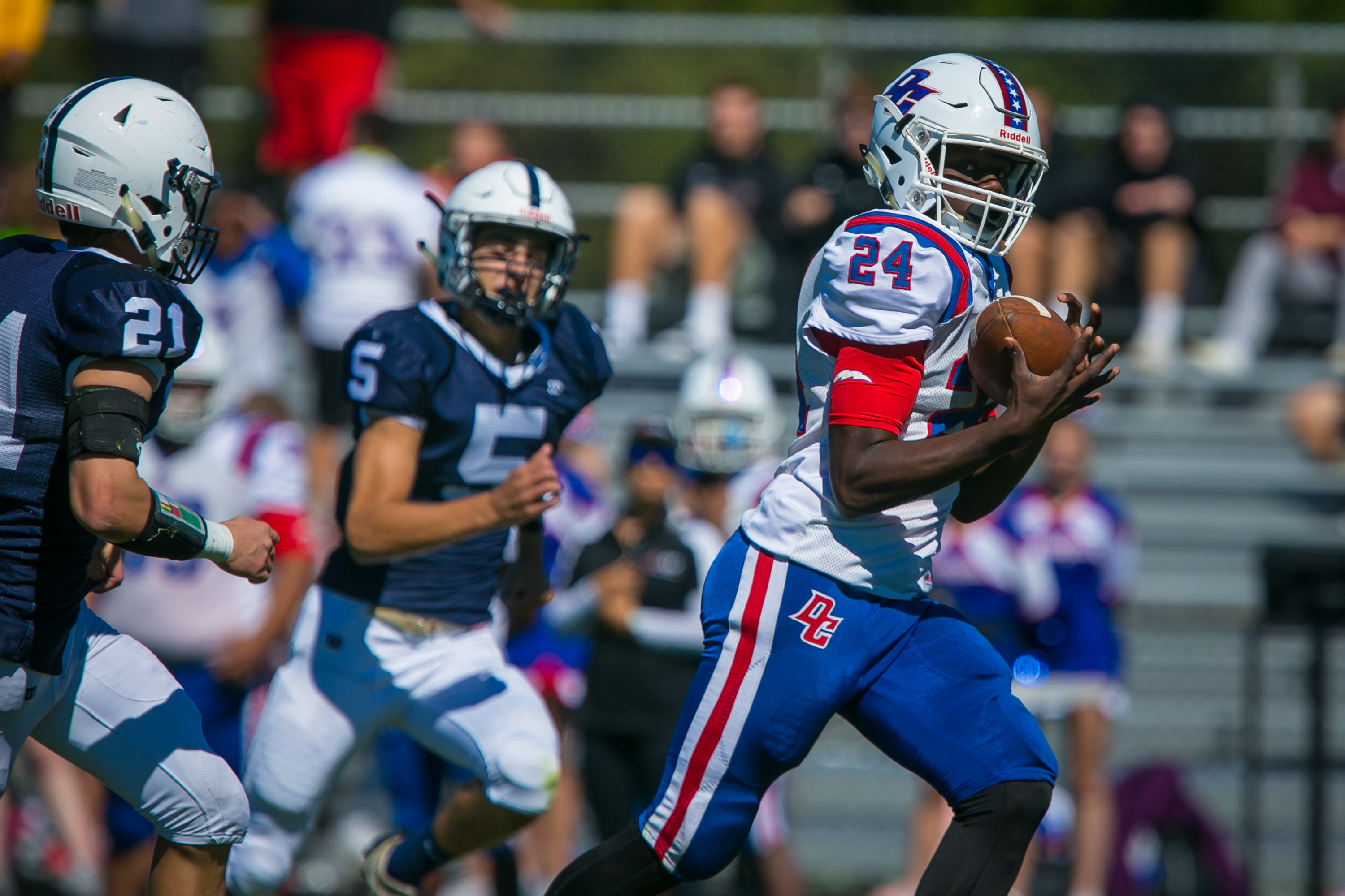 Dundee-Crown wide receiver Jordan Hairston (24) makes a catch in the first quarter of the football game at Cary-Grove High School, Cary, Ill., Sept. 22, 2018. Cary-Grove won on Homecoming, 55-15. (Daryl Quitalig/Shaw Media)